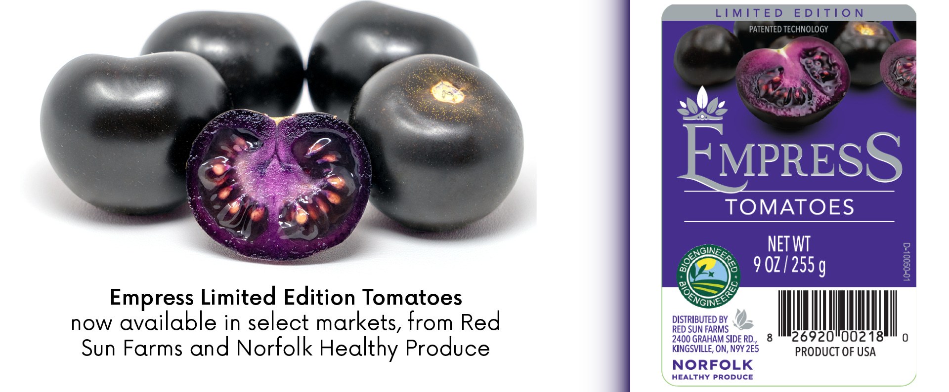 Desde el año pasado se comercializa en Estados Unidos un tomate transgénico rico en antocianinas, un pigmento y antioxidante natural que otorga una coloración morada intensa a los frutos. A diferencia de otros cultivos transgénicos, este producto se vende exclusivamente para jardinería. Por unos 25 dólares puedes llevarte una planta o diez semillitas a casa (solo en Estados Unidos).