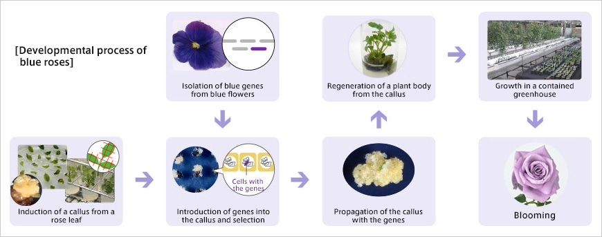 El desarrollo de plantas ornamentales transgénicas se centró principalmente en modificar el color de las flores. En 1996, la empresa australiana Florigene3 introdujo al mercado los claveles de color violeta al insertar el gen de la enzima F3'5'H, responsable de la producción de delfinidina. En años posteriores, esta técnica se aplicó a rosas y crisantemos. Actualmente, estas flores transgénicas se producen en invernaderos del municipio de Sesquilé, Colombia.
